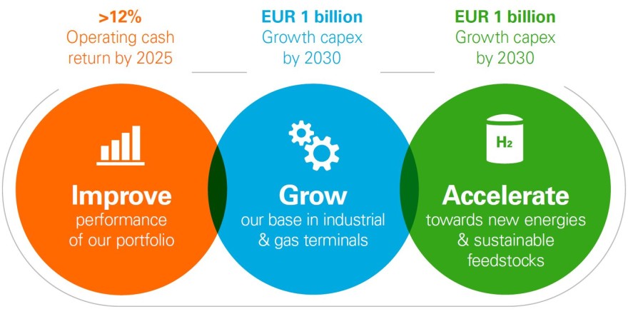 As part of our strategic priorities we will grow our base in industrial and gas terminals and we will accelerate towards new energies and sustainable feedstocks.